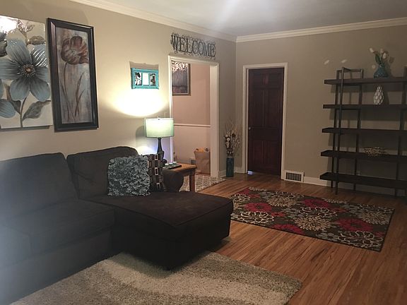Lovely 1 1/2 story home with covered brick front porch. Beautiful hardwood floored Living Room w/Fireplace. 2 bedrooms on main level and recently updated full bath. Very nice kitchen with 2 arches, stainless steel appliances, stylish stone wall with recessed lighting. Nice Dining Room/Breakfast Room adjacent to Kitchen. Large Family Room(31 ft long) with full wall bookshelves. Large bedroom on 2nd level with full bath and good storage. Attached 2 car garage and large concrete driveway.