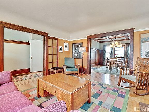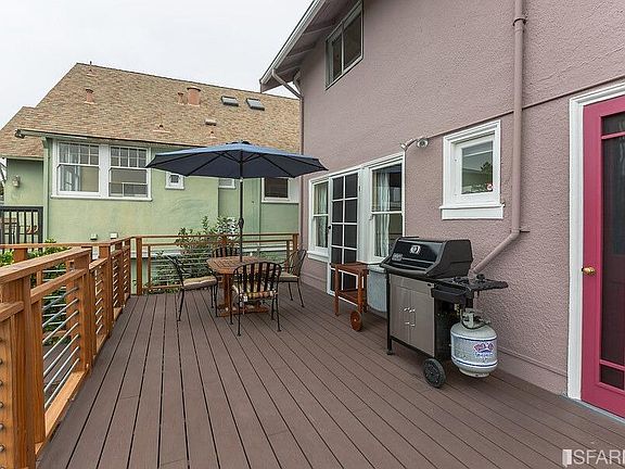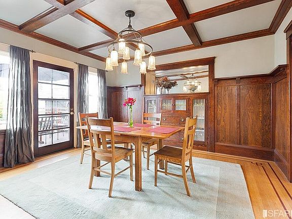 This gorgeous home blends remodeling/upgrades with classic architectural details and charm. The huge deck is accessible from both the kitchen and dining room, and has tons of room to entertain, BBQ or relax. The main level includes the modern kitchen which features a Thermador 6 burner range, stainless appliances, tons of counter top space, as well as access to the remodeled 1/2 bathroom. The living room has a fireplace and the dining room has exquisite box beam ceilings and wainscoting. Both bedrooms and the remodeled full bathroom are upstairs. The main bedroom includes a large step out balcony at the front of the house. Through the remodeled bathroom is a Zoom room with 2 desks. The second bedroom currently functions as both a guest room and a media room. Need more space? Check out the bonus hobby/craft room at yard level beneath the deck. Turn it into a gym, media room, playhouse? W/D in basement included. Large terraced front and rear yards.