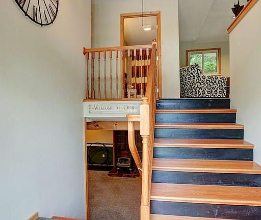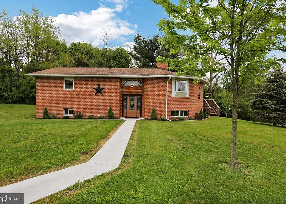 This brick home is completely updated. As you enter you walk up to a very open concept with a kitchen and great room which feature a 2 sided fireplace. The cabinets are a rich maple and they're accented by granite counter tops. The bedrooms are on this level and the baths are nicely updated. The floors are an easy care pergo or tile with warm inviting colors. The lower level has 2 beautiful spaces. One could be a game area and has a bar. The other space is perfect for entertaining. There is a fireplace here and a wood stove. You can actually heat this house with wood. There is a lot of storage space in this home. Then there is the outbuilding. The garage area is perfect for the car buff, the collector or a wood maker. The carport type area is large as well. Great for equipment storage and a perfect spot for a picnic. This home sits on 4.1 acres with a great view and backs up to wooded seclusion. It is really a treat to see. Very unique and well cared for. Make an appointment to see this one.
