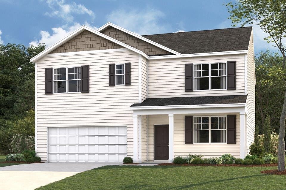 The Hanover floorplan available in Fox Hollow in Dalton, GA, is one of our most popular floorplans. The foyer opens into an open concept main level. A large kitchen with a pantry and island with countertop seating overlooks a dining and living area. The downstairs also features a half bathroom and a flex room that could be used as a formal dining space or an office. Upstairs is a loft which provides extra space for work and play. The primary bedroom has a private bathroom and walk-in closet. Three additional bedrooms share a comfortable bathroom. There is also a laundry room upstairs for convenience. This floorplan is designed for any stage of life.