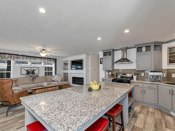 Welcome home to this bright and inviting like-new home in River Run. Located on a desirable corner lot, enjoy time outside on your covered porch or side deck. Enter into the light-filled and open living room featuring a gas fireplace with the kitchen beyond. Ideal for entertaining, kitchen boasts a large island and adjoining eat-in area. Continue down the hall to the spacious primary bedroom featuring an oversized shower and walk-in closet. The two secondary bedrooms are perfect for guests or office space, and there's a full second bathroom. Laundry room with additional storage is located down the hall. Additional features include central A/C and adjacent outdoor shed. Located in a desirable community, enjoy close proximity to downtown Exeter, restaurants, shopping, access to major highways and more. 55+ park. Showings by appointment.