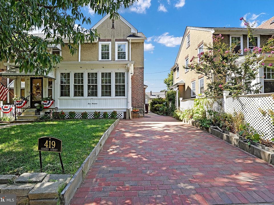 Welcome to 419 Geddes Street, a beautifully updated home located in the highly sought-after Union Park Gardens neighborhood. This residence offers a unique blend of historic charm and modern amenities, perfect for those seeking a city lifestyle with a suburban community feel. As you arrive, you'll immediately notice the rare convenience of the striking Newly Paved Brick Driveway which is one of the off-street parking spaces. There are additional spaces in the Rear Alleyway with easy access to the newly updated rear kitchen door with inset blinds. Enter the home through the inviting enclosed sun porch with tiled floors, a perfect space for relaxing or welcoming guests. Inside, the main level is adorned with newer Pella auto-lock windows, refinished hardwood floors, contemporary paint colors & extra wide baseboard trim work that create a warm and welcoming atmosphere. The updated kitchen is a chef's dream, featuring newer Birch flooring, granite countertops, and tasteful modern cabinetry, along with a gas range and exterior vented hood. There is even a partially exposed Brick Wall to the left of the refrigerator. The living room and the dining room with a bump out extension offer bright and spacious areas, ideal for entertaining or enjoying quiet evenings at home. Upstairs, you'll find three bedrooms, plenty of sunlight and the Primary Bedroom has an oversized closet. The full bathroom is complete with marble flooring, a classic tub and updated shower fixtures that provide a spa-like experience. The attic, accessible by pull-down stairs, is fully floored, offering ample storage space. The wonderful fenced rear yard provides privacy and direct access to the other additional parking spots in the rear alley. The yard has plenty of room for gardening & grilling! The basement, with its newly tiled floor and appealing stone foundation, includes a French drain and sump pump with battery backup, offering peace of mind. There’s also a functional "bath" with a toilet and shower in the basement—just add a sink, and you'll have a second full bathroom. This home is equipped with updated gas heating and BRAND NEW central air conditioning, ensuring comfort throughout the year. Other costly updates have already been completed, including plumbing & electrical wiring. Union Park Gardens is a cherished community known for its century-old park-like setting and strong neighborhood camaraderie. This home offers the perfect blend of classic character and modern upgrades in a vibrant community. Whether you're a first-time homebuyer, a commuter to Wilmington or Philadelphia, or someone who values a close-knit neighborhood, this home has it all. Don’t miss the chance to make this exceptional property your own—schedule a visit today and see all that awaits you in this classic yet modern delightful home. This home qualifies for the Wilmington 1st Start Homebuyer Program. Buyer may be eligible for up to $15k in closing costs/down payment assistance. Contact Amy Libonate at Delaware Financial for details. Room measurements and square footage listed are estimates and should be verified by Buyer.