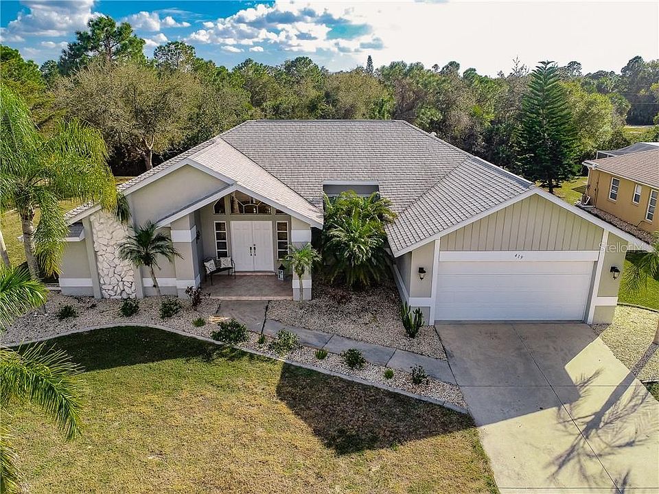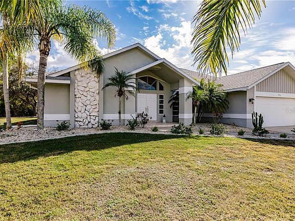 Fabulous location in the deed restricted community of Burnt Store Meadows just a few minutes from historic downtown Punta Gorda and popular Fishermens Village. You can move right into this tastefully appointed 3 bedroom, 2 bath pool home overlooking beautiful and scenic greenbelt. This home offers bright and open floor plan with soaring vaulted ceilings in main living areas, and sliders in all main living areas leading to pool and view of greenbelt. Home has plenty of room for family and friends with over 1900 square feet of living space, living and dining, and spacious kitchen with breakfast nook. Features include color accent walls, plant shelves, decorator fans and lights and recessed lighting, and custom plantation shutters and blinds throughout. Fully equipped kitchen boasts stainless appliances, pantry, granite counters with island and long breakfast bar, tiled back splash, pass through window to lanai, and opens to the main living area and breakfast nook for easy entertaining. Master suite has walk in closet and private en suite bath with dual sinks, garden soaking tub, and separate stall shower. Dedicated laundry room with washer & dryer has overhead cabinets and utility tub. You can enjoy your solar heated pool year round, and both the pool and lanai overlook the beautiful greenbelt that will provide privacy and a park like setting. Sit back and watch all the wild life and birds unique to Florida. Other features include storm shutters and pool resurfaced with PebbleTec in 2019. Lovely curb appeal with double door and tiled front entry, lush tropical landscaping and mature palms, landscape curbing, and decorative rock. Burnt Store Meadows is a community with all homes located on greenbelts with lots of open space. Proximity to waterways, local beaches, dining, shopping, and golf courses makes this property ideal for the Florida lifestyle. Also, easy access to public waterfront parks with bike and walking trails, picnic areas, and boat ramps providing access to many waterways including the Peace River, beautiful Charlotte Harbor, and the Gulf of Mexico. And quick access to Interstate 75. Quiet community, yet all amenities and conveniences nearby.