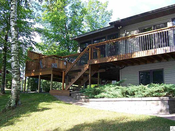 Spectacular view and room for everyone in this custom built 4 bedroom 3 bath home on 500 acre Big Lake near Cloquet. Designed with company in mind, there are lots of places to gather. Enjoy the exceptional views of the lake from every major room. There are 3 fireplaces, 2 gas and a wood burning. Updated kitchen has quartz counter tops, tile backsplash, double oven stainless steel stove and a custom desk. Maintenance free siding insures you spend more time relaxing and less time working. There is blacktop from town to the garage. In the rare event of a power outage, you will find a propane generator that is connected to the 500 gallon propane tank. The generator will power essential services like the well, water heater, kitchen outlets, freezer, etc. Shoreline isn't weedy, nice swimming ,good fishing, and aluminum dock will stay. Look no further. This is the lake home you've been waiting for! 1 year home warranty. owner-agent