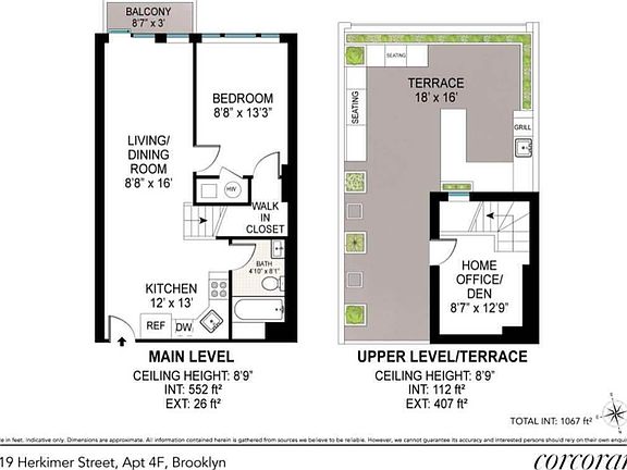 This 1067 square foot apartment home has 2 bedrooms and 1.0 bathrooms. This home is located at 419 Herkimer St #4A, Brooklyn, NY 11213.