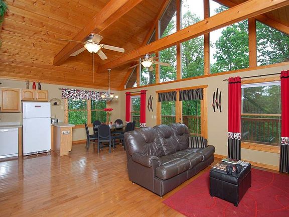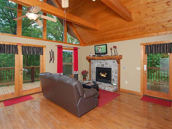 3 bedroom, 3 bath cabin in an excellent setting and location. On a beautiful wooded lot with a seasonal view. On approximately 1 acre. Conveniently located between Gatlinburg and Pigeon Forge. Only minutes to Downtown Gatlinburg, Dollywood, shopping, restaurants, and more. This gorgeous home offers an open floor plan on the main level, hardwood floors, cathedral ceilings, exposed beams, gas log fireplace, and an upstairs loft with a privacy curtain. This property has been very well taken care of and is very nicely appointed. Perfect for overnight rental, 2nd home, or permanent residence.