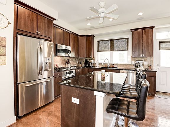 Stunning EYA End Unit Banneker row home in Navy Yard/Ballpark + rooftop terrace w/ dual fireplace, $200K in options. 3-4 bedrooms. Features include custom wet bar, media room w/surround sound, whole house music, chef's kitchen, 4.5 baths, 2-car garage, LR fireplace, cust.window treatments, master bath with SPA shower + more. Walk to metro, Nats Park, Harris Teeter, Whole Foods, Yards Park, Barracks Row. LEED Certified. Quiet block.
