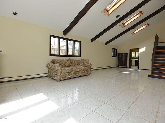 Enjoy all that Lake Riviera has to offer in this private Spanish style waterfront custom home. Enjoy views of the lake while dinning, lounging or tanning on the multi-tiered deck leading to an oversized yard with fire-pit, private dock with fishing, canoeing, and electric boat use on a USGS maintained reservoir/ dam. spacious home boasts 7 bedrooms and 4 baths with Italian tile and hardwood floors throughout. The open floor plan showcases the expansive living, dining and kitchen area with 4 skylights and a great wall fireplace modified to electric. The first floor features 2 spacious bedrooms with 3/4 bath, a recreation room and a screened outdoor deck room. The second floor contains 3 spacious bedrooms, a full bath and of course a Master Suite with private 3/4 bath and balcony with lake view. A 1/2 finished basement hosts a massive bedroom, walk-in closet, 3/4 bath, and a Great Wall fireplace modified to electric. joining is a laundry / furnace room, a basement storage / workshop with entry to rear yard. Entertain on a 80 x 500 foot piece of property with street frontage surrounded by Spanish privacy walls. plenty of parking with vehicle access to 200 ft long front and rear yard. A refurbished town park within 5 min. walking contains amenities of playground, basketball courts, beach and fishing pier. free grade school busing. over 50 entertainment and fine eateries within 30 min.