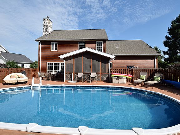 419 Lakewood Dr, Williams Bay WI 53191-9507 - Custom Built Fairwyn Home in desirable Lakewood Trails Subdivision centrally located in Williams Bay. Cobble Stone and Cedar Siding exterior and nicely landscaped yard. Relax and play in the heated outdoor pool surrounded by the large custom built deck and privacy fence. After swimming relax in the beautiful screen room. Basement is plumbed in and ready to finish. Come see this beautiful home within walking distance of award winning Williams Bay Schools.