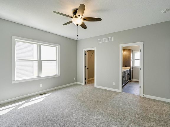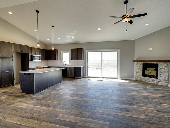 Here's an opportunity to acquire a sought after North Scott Home. Upon entry, you're welcomed by a spacious foyer leading into an open main level featuring a great room, kitchen, and dining area. Notable features include a gas log fireplace with stone, a generously-sized kitchen island with quartz countertops, and a pantry. The master bedroom, situated peacefully on the North side, boasts a double vanity bath, walk-in shower, linen closet, and sizable walk-in closet. On the opposite side, you'll find the second and third bedrooms with a conveniently located full bath between them. The two-car oversized garage provides a separate entrance to the basement. The full basement, equipped with two egress windows, offers potential for two additional bedrooms with walk-in closets, a rough-in for a full bath, and ample space for recreation and exercise. The exterior showcases partial stone and covered porch with charming beams. Purchasing a student-built home comes with numerous extras and upgrades, supporting a valuable program that nurtures future trade professionals. If basement finish is desired, it can be arranged after closing and there is a layout for this already on blueprint.