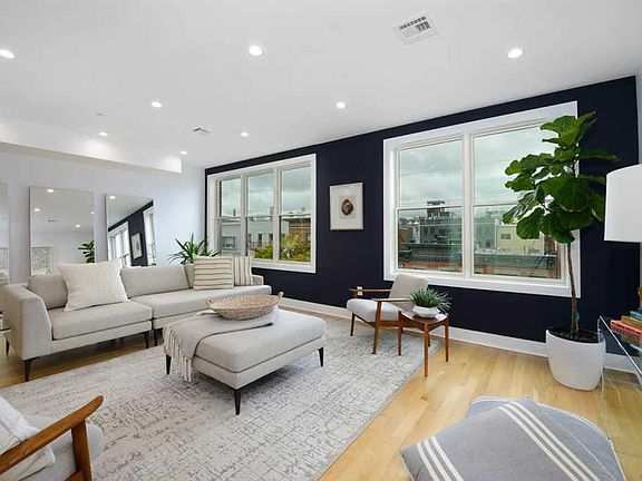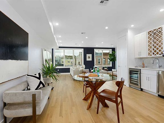 Enjoy a private elevator escorting you to the main level of this magnificent modern four bedroom duplex home, exuding elegance throughout the 3000 SF open concept. Host soirées seamlessly from your swanky wet bar, complete with sink, wine cooler, and an ice maker to whip up refreshments. Flow into the expansive living room stretching 25 feet across lined with windows framing the surrounding city. Enjoy high ceilings and walls of windows allowing natural sunlight to illuminate the entire home. The chef inspired kitchen features an abundance of white cabinetry, Viking gas range, elongated floating island capped with waterfall QuartzMaster countertops and chic farm sink. Dedicated dining area will accommodate a 12 person table for those big holiday events, also a bonus eat-in-kitchen area for everyday use. Discover a versatile bonus room ideal as an office or in-law suite. Many closets including linen, storage, coat, and pantry, finished in custom build outs throughout. Additional features include a 2 zone heating and cooling system, smart thermostat, laundry room with front loading washer & dryer, laundry sink, and upper storage cabinets. On the bedroom level are three full bedrooms and baths. Master suite features a dramatic wall of windows stretching across 25 feet, double vanity and dual shower, massive walk-in closet. Finally discover your private roof deck including a fully equipped kitchen comprising a refrigerator, storage compartments, sink and natural gas grill. Deluxe duplex lifestyle resembles a tranquil suburban home, meanwhile a buzzing city outside of its doors allows everyone to benefit from all of Hoboken's amenities. On the street level, homeowners directly access their private elevator inside a vestibule, also is where an additional 400SF of private storage, shared bicycle and stroller parking. A home with unlimited opportunities, a must see! Rental parking available located adjacent to property.