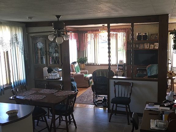Our home is a well maintained open concept kitchen, dining and living room. We have two large bedrooms and a full bath, The home is heated with oil HWBB and hot air wood furnace and heat pump, 28x40 detached two door garage and a 16x16 utility shed. The house is located with easy access to ITS 81 and is also in close proximity to our neighboring country of Canada. The neighborhood is a mixture of young families, and older people. It has a small town atmosphere and a great place to reside.