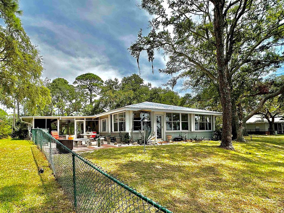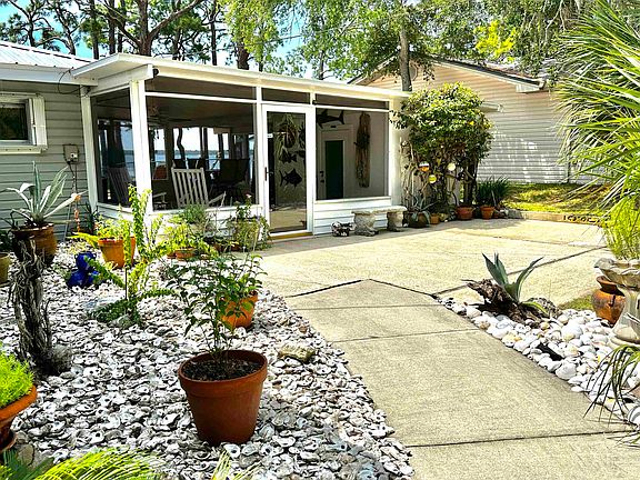 Check out this beautiful 3 bedroom, 2 bath home in Ochlockonee Shores. It is finished with new tile floors, new kitchen countertops, and up-to-date appliances. The floor plan is complemented by a beautiful Florida room that welcomes natural light into the home. It also features an open outdoor patio, as well as an enclosed outdoor patio. There is a shared dock on the property, complete with running water and access to electric. The dock is 300' and has been recently fortified. The home's windows include storm shutters to protect against adverse weather conditions. The home also received a new metal roof in 2021.