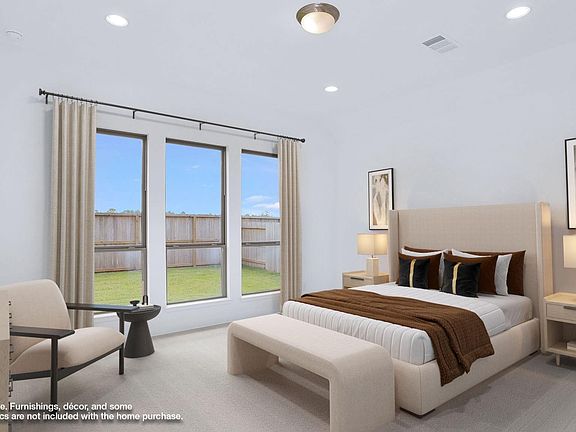 READY FOR MOVE-IN! Home office with French doors set at entry with 11-foot ceiling. Open kitchen offers center island, 5-burner gas cooktop and corner walk-in pantry. Dining area opens to spacious family room with wall of windows. Private primary suite includes bedroom with wall of windows. Dual vanity, corner garden tub, separate glass-enclosed shower and large walk-in closet in primary bath. Abundant closet space and natural light throughout. Covered backyard patio. Mud room off two-car garage with additional garage bay space.