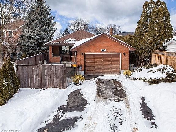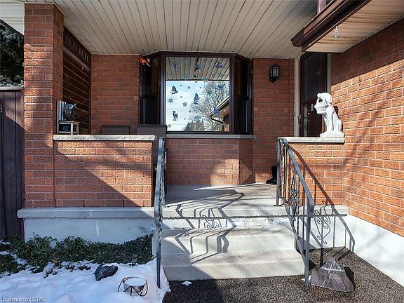 Wonderful opportunity to own this surprisingly large Bungalow with attached garage, located on a quiet cul de sac in North East London. This property is sure to impress with 1850 sq ft of living space on the main floor alone. Features a lovely covered front porch and private front courtyard, 3 bedrooms on main and master offers a 3-piece ensuite, formal living room and dining room, eat-in kitchen, Main floor 4-piece bathroom, spacious family room with fireplace and 3 season sunroom which leads to the private backyard, lower level offers a large rec room, games or music space, laundry room and the potential to finish for more living areas, hardwood flooring, newer carpet in the basement, crown molding, french doors, windows (2010), Furnace (2005), A/C (2005), some light fixtures, painting, newer toilets and more! All measurements are approximate.
