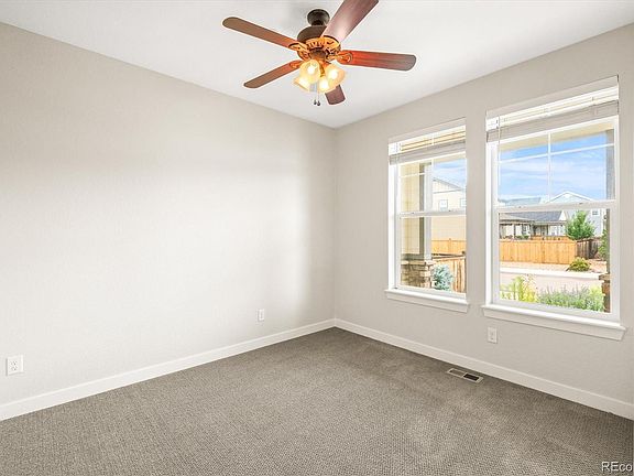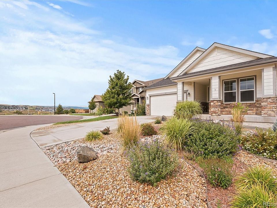 STUNNING HOME IN THE HEART OF CASTLE ROCK!! WALK TO DOWNTOWN'S RESTURANTS AND SHOPS!! You will fall in love with the landscaping and curb appeal, as well as your view of Red Hawk Ridge from the second you pull up. This 2017 built home features 3 bedrooms and 3 bathrooms, 2500+ finished SQFT, an open-concept floorplan with tons of natural light, and multiple flex spaces along with ample storage. Enter to find a secondary bedroom conveniently located adjacent to the full guest bathroom. As you head down the hall and past the office you will start to realize just how open this home feels with the huge kitchen island, eating space, large family room, and windows for days. Head out back and take in the awesome covered deck, mature trees that add privacy, and the Synlawn turf (perfect for those that hate to mow but don't want zero scaping). Back inside round out the main level tour in the primary suite that features wall accents, a primary bathroom that will impress with the extra little finishes added by the Sellers. Don't forget to check out the large walk-in closet and enormous linen closet before heading down to the basement. The 2021 professionally finished basement is the definition of FLEX SPACE...Overall very open with nice definition between areas including possible, office/study/workout area, media room, and non-confirming bedroom with built-in murphy bed. A huge 3/4 bathroom and tons of accessible storage space are just bonuses to this wonderful area. New roof in 2021 and HVAC system just checked and serviced prior to listing. Denver Tech Center 20 minutes away... Come see for yourself all this amazing property and location has to offer!!
