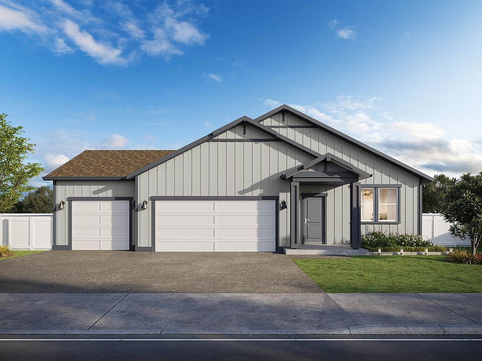 RARE FULL BASEMENT! Experience modern elegance in this newly constructed Columbia floor plan by Architerra Homes. This 3-bedroom, 2-bathroom residence features luxury plank flooring throughout with a 3-car+ garage. The open floor plan includes a gourmet kitchen with an oversized island and a walk-in pantry, enhancing both style and functionality. The primary suite offers a walk-in closet, and the covered patio is perfect for relaxation and entertaining. The added bonus here is that this home includes a full unfinished basement to expand your living space. Enjoy beautifully landscaped front and back yards that complete this exceptional home. Embrace comfort and sophistication—schedule your tour today! Photos of a previously built home. Finishes will vary. Please contact agent for correct exterior elevation and options.