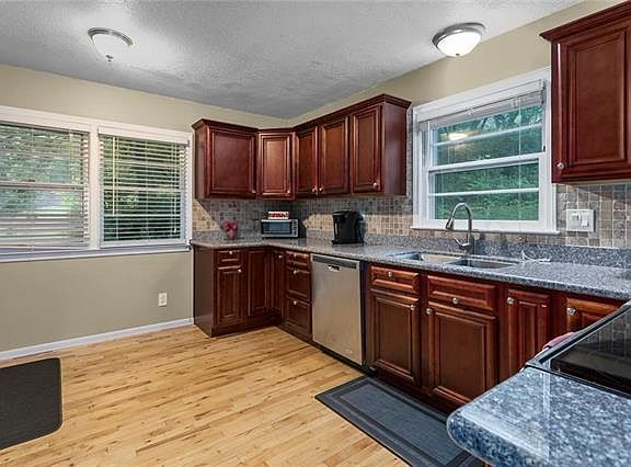 Cul de Sac. LARGE, DEEP Treed Lot. Updated. MOVE-IN READY. REMODELED Bathrooms. The charm of old Briarcliff w/ mature trees. A grand entrance with slate tile connecting to the gorgeous hardwood floors in the great room. The kitchen's cherry cabinets, granite counters, tile backsplash, & stainless steel appliances make this feel like a new home. The open kitchen/family room features a fireplace & French doors to the stone patio & PRIVATE backyard. The unfinished subbasement is perfect for a hobby/workshop.