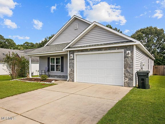 Gorgeous move-in ready property right in the heart of West Crossroads neighborhood that you will NOT want to miss! This floor plan offers the perfect entertaining space for your guests with vaulted ceilings spanning across the living space, cozy natural gas log fireplace, and gorgeous laminate flooring. The kitchen offers granite countertops, a breakfast bar, and stainless steel appliances. The owner's suite gives you a sense of calm and serenity for you to retreat to with a dual vanity, tub/shower combo, and large walk in closet space. Two guest suites offer plenty of space for a private home office or a cozy guest space with a double entrance private bathroom. A private, fenced in backyard offers the space to host a barbecue or sip cocktails on the back covered patio. Enjoy the prime location only being minutes from Downtown New Bern, shopping, restaurants, and medical facilities.