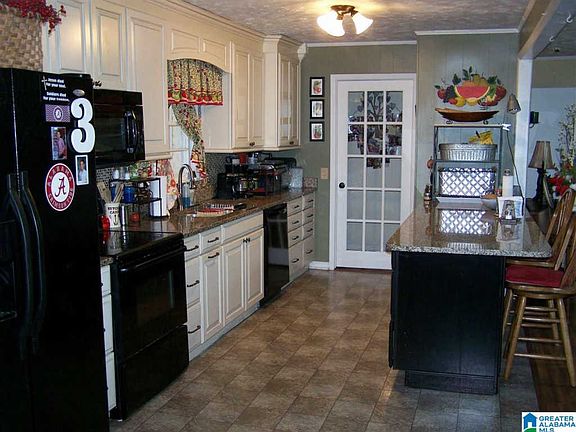 Thatâs beautiful Full Brick home sets on 1.2 acres in the Saks school district. This 4 bedroom and 2 full Bath home is super private and you probably drove by and never seen it. This home has been remodeled over the last few years. The beautiful kitchen has soft close cabinetry And beautiful granite countertops. Thereâs also a huge granite bar perfect for kids to eat at in plenty a room to do all your cooking and prep work. Thereâs a huge dining/den combo area off kitchen. Thereâs also a very large living room with hardwood laminate floors. Thereâs also a newly added sunroom that also has access to a underground storm shelter under it as a part of the house. There are three good size bedrooms along with a huge hallway bathroom and thereâs also a full master bathroom. Off the master is a deck to sit out and watch the sunset in the evenings. There is a fenced in part of the yard for your animals also. Thereâs a nice storage building and plenty of other land to have a garden