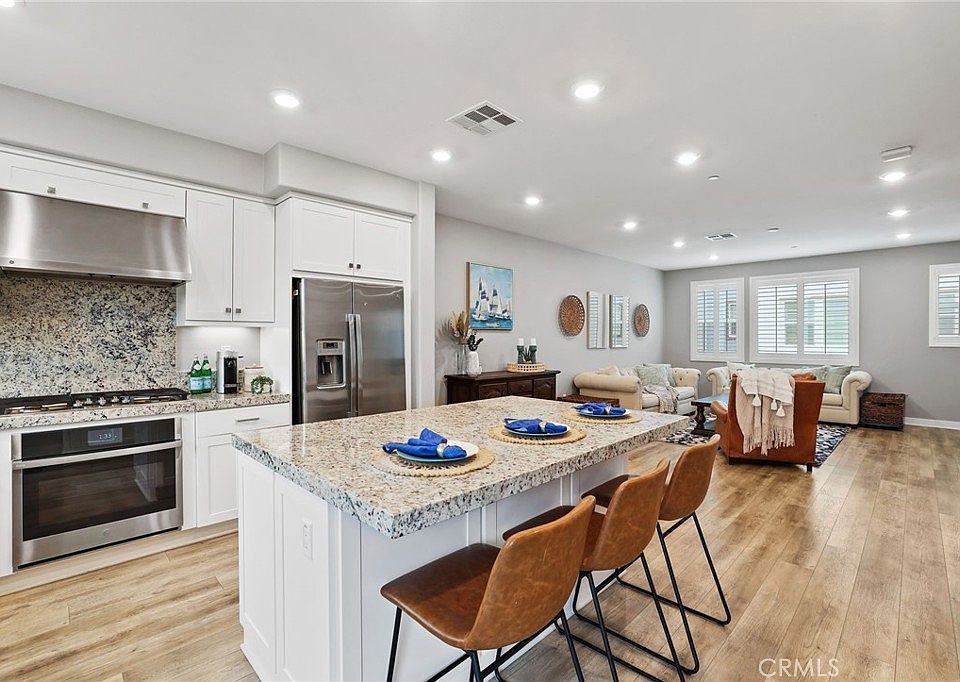 Discover the many details and stunning upgrades complimenting this modern 2020 built townhome. Located in the Brand New Resort-Style community of Serrano Summit and featuring 3 Bedrooms + 3.5 Bathrooms this Stylish Residence has everything the Modern Day Buyer is looking for! A Smart Home Keyless Entry and a Light & Bright interior greets you upon entry to provide the perfect ambiance for your daily routine. The highly sought after Downstairs Full Bedroom and Bathroom and Luxury Waterproof Vinyl Flooring throughout the entire home continue to set the tone for this gorgeous home. Upstairs you will find the heart of the home with the Gourmet Kitchen featuring Neutral Granite Countertops + Center Island, Stainless Steel Appliances, Crisp White Cabinets, Pantry and Charming Bay Window. The comforts of an Open Concept Living Room are highlighted by an abundance of natural light shining through Plantation Shutters creating your very own at home sanctuary. Upstairs you will find an additional Bedroom with En Suite and the Primary Bedroom. Indulge within the Comforts of a Calm Atmosphere in your Primary Suite Retreat offering plenty of Space and Natural Light throughout. Continue into the Spa like Master Bathroom including Upgraded Flooring, Quartz Counter tops, Massive Walk-in Shower, Dual Vanities, and Large Walk-in Closet. The numerous outdoor enclaves of this home include a charming sun filled balcony off the kitchen perfect for that morning cup of coffee and a relaxing front patio space for those friends and family gatherings. Additional upgrades include Designer Interior Paint throughout, Epoxy Flooring in the spacious Two Car Garage and 220V Tesla Charger. The location of this home enjoys easy walking distance access to Exclusive Resort Style Serrano Summit amenities including The Summit Club, Beach Entry Pool & Spa, 2 Outdoor Kitchens, BBQ’s, Shaded Poolside Lounges, Multi-Use Space for Meetings, Pickleball Courts, Basketball Courts, and Multiple Picnic areas. Gorgeous Home!