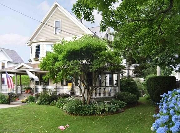 Welcome to this one of a kind Queen Ann classic home. It is nestled in the heart of Woonsocket's prestigious North End. The exterior boasts a 65 foot veranda perfect for entertaining or a private dining experience. Included is maintenance free vinyl siding, a forever slate roof, new windows & doors, and a 3 year old driveway. The 2 car garage comes complete with it's own basement and service bay. The yard is a gardener's delight with 11 gardens, 15 varieties of hosta, shasta daisies, daylilies, etc. You will fall in love with the stunning entrance that has an open staircase, oak floors with a Greek inlay, and original woodwork throughout. The spacious first level includes a foyer, living room, kitchen, half bath and dining room with access to the rear deck. The second level has 3 spacious bedrooms, a full bathroom, and a tower room that has 180 degree views overlooking Prospect St. The house also includes a 900 square foot walk-up, unfinished attic. The walkout basement has a utility room, laundry room, half bath, and a work room which includes a 2 year old dehumidification system. Call today for your exclusive tour!
