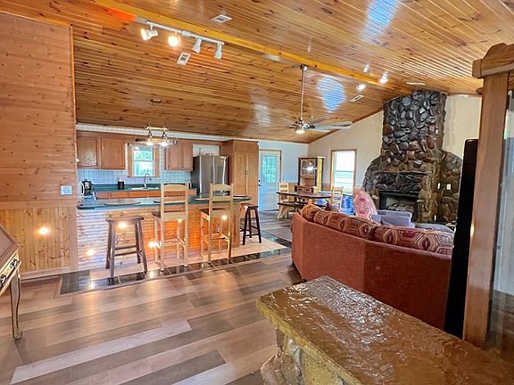 PRIVATE CABIN WITH INCREDIBLE MOUNTAIN VIEWS ...This 2/2 mountain cabin is nicely situated on 1.15 acres and has amazing year round mountain views. Step inside to all wood interior for rustic mountain feel. Features include open floor plan, hardwood floors, vaulted tongue/groove ceiling, massive floor to ceiling custom river rock fireplace. Spacious kitchen with gas range, breakfast bar that looks out over the great room. Master bedroom has ensuite bathroom. The deck is a perfect place to enjoy your morning coffee and take in the views or entertain family and friends. There is a 2 car detached carport and space in the backyard. Would make a great rental or full time residence. urn key and fully furnished! If you are looking for a nice private home in the mountains w/awesome views, easy access and not far from town THIS IS THE ONE! This home is priced under market and will sell fast.
