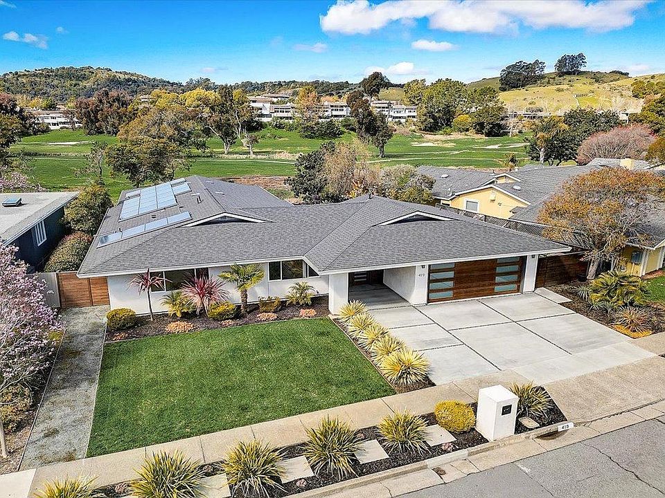 Exquisitely built home with major remodeling less than five years old! Stylish architectural delight on the 12th Fairway of Peacock Gap Golf Course. This extensively remodeled single level home was completed in 2018, replacing everything from sewer line to roof with top-of-the-line quality, including foundation, underground electrical, plumbing, wiring, lighting and walls to name a few (please see list attached to MLS). The impressive chef's kitchen has an L-shaped quartz slab island flowing into the open floor plan. Enjoy soaring ceilings in a striking Great Room with an abundance of natural light streaming through the 26' and 14' accordion glass wall of doors that seamlessly blends with the outdoors. The house has four spacious bedrooms, and the primary bathroom has heated floors. This property also has a detached casita to use as you wish. Enjoy the courtyard, level lawn and custom fire pit with picturesque views of park-like vistas. This home boasts a Tesla solar roof, two Powerwalls and a Tesla charger. Close to China Camp State Park, McNears Beach, Marin Yacht Club, Andy's Market, Range Cafe, neighborhood parks and trails. Welcome to paradise!