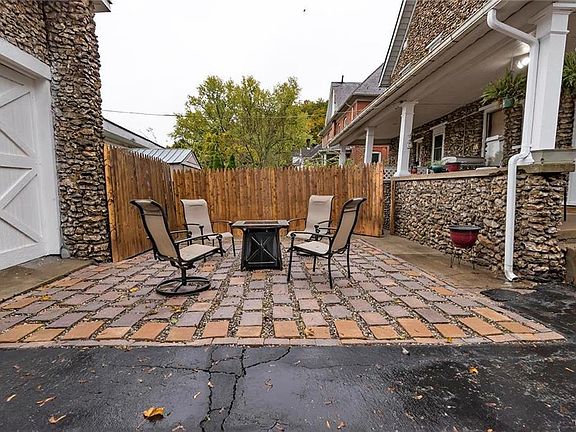 One-of-a-kind stone twin with spacious living area and stunning Chestnut woodwork. Too many features to mention. Front and rear covered porches, driveway for off-street parking, 4-car garage, paver patio, and fenced yard. Finished attic for additional bedroom. Unique storage wall cabinets. Exceptional location. Reduced price!