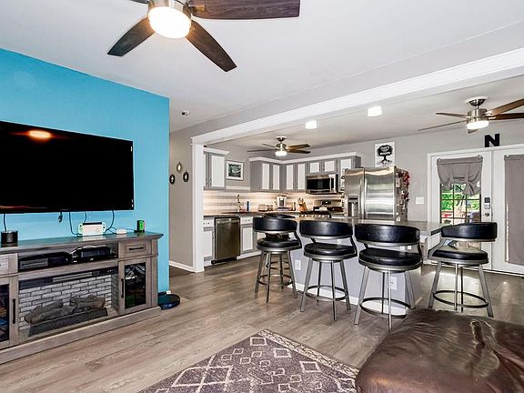 This exquisite ranch-style residence features 4 bedrooms, 2.5 bathrooms and a host of stunning upgrades that will captivate your senses. As you step inside, you'll be greeted by an open-concept living/kitchen area that exudes a warm and inviting ambiance. The spacious kitchen is a chef's delight, boasting a massive island that serves as the centerpiece, offering ample room for entertainment and hosting dinner parties. Adorned with sleek stainless steel appliances and modern finishes, this kitchen is the epitome of contemporary elegance. Through the French doors, discover the converted garage area that has been finished for bonus living space. This versatile area provides endless possibilities, whether you envision it as a playroom, home office, or a cozy den for relaxation. Off the main living area, you'll find the master bedroom and two additional bedrooms that are thoughtfully designed to provide privacy and comfort for family members or guests. The master bedroom is a private sanctuary that encompasses both style and convenience. Featuring a unique Jack and Jill style half bath, this master suite provides easy access to the full main bathroom, creating a practical and functional layout. Venture downstairs to the finished basement, where you'll discover an additional bedroom and a non-conforming bedroom that can be used as an office or flex space to suit your needs. The full bathroom in the basement has just been finished, adding convenience to this lower level retreat. Outside, the expansive backyard beckons with its generous size and a deck perfectly suited for entertaining and enjoying the outdoors and a 14'x14' shop/shed with electricity and concrete floor. With the added privacy provided by the surrounding fence, you can relax and unwind in your own personal oasis. Location is key, and this home delivers. Within walking distance to elementary, middle and high schools and walking trails along the creek located just behind the home.