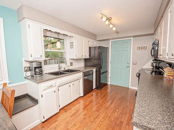Wonderfully updated split level home that offers, 4 bedrooms, 2 living areas, 2 full baths, hardwood flooring from entry through kitchen and dining, brick fireplace, fenced back yard, 2 car attached garage, brick and vinyl siding for low maintenance. Gorgeous kitchen with black double sink white cabinets and dining area. Big fenced backyard with a nice patio to enjoy those summer barbeques with beautiful mature trees and landscaping. Its ready to move into come see this one!