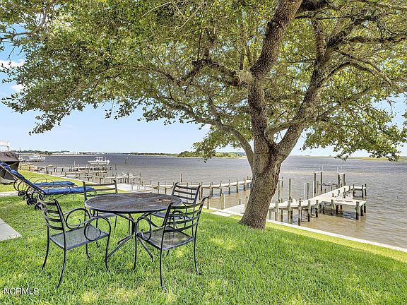 Welcome to The Captain's Cottage, a unique and charming waterfront home nestled within walking distance to historic downtown Swansboro and just 20 minutes to the beach. This one-of-a-kind waterfront home invites you to experience the serene and breezy lifestyle of coastal living, with stunning views and charming historic details that capture the essence of Swansboro's rich heritage; the friendly city by the sea. The quaint attractive yard invites you to relax and enjoy outdoor seating on the lawn, where you can savor breathtaking sunsets, enjoy the sights of local birds, jumping mullets and dolphin pods, as well as watching the parade of sail boats migrate in the spring and fall. Imagine this all from your very own backyard! The Captain's Cottage embodies the coastal charm of southern living. Imagine dinners on the lawn overlooking the water, mornings spent kayaking along the barrier islands, strolling to downtown Swansboro where history and modern amenities blend seamlessly and the annual Swanfest where local artist are featured from late May through early September in the open pavilion and restaurants. This home is more than just a place to live, it's a lifestyle that invites you to slow down, savor the moment, and embrace the beauty of coastal living. Step into the basement floor, with an additional 700 plus square feet, where a versatile flex room welcomes you with possibilities—perfect for a game room or casual entertaining space. A cozy additional room offers a quiet nook for reading or working, while a full bathroom with a shower ensures convenience. There's ample storage space available for all your outdoor gear and essentials, from cornhole boards to kayak paddles and boating accessories. Head up to the first floor, where the airy living spaces bathed in natural light immediately draw you in. The first living area, with its abundant windows, creates a bright ambiance, ideal for relaxing while taking in the sweeping views of the Intracoastal Waterway.