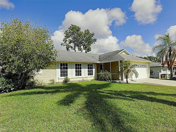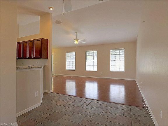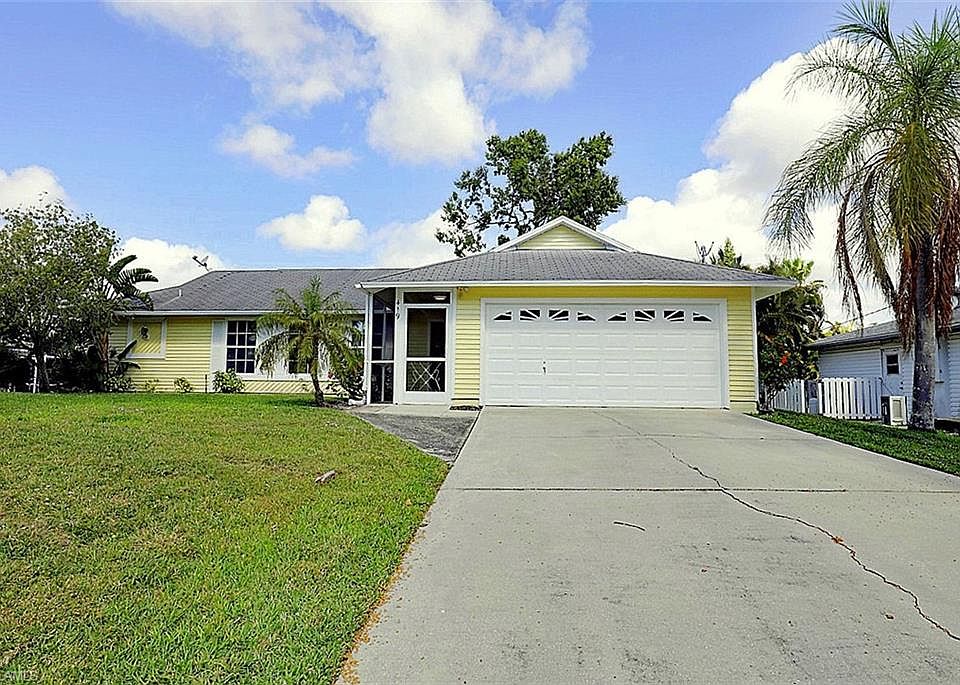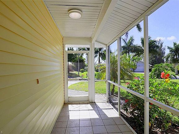 Spacious, adorable single family home is available now in Cape Coral. The split bedroom floor plan boasts three bedrooms and two baths with wood plank flooring and beautiful tile throughout. The master bathroom has a his and her sink and tiled shower. The second bathroom has a custom designed sink. Custom tile countertops throughout both bathrooms. The kitchen includes upgraded appliances, granite countertops and a breakfast nook with lots of windows allowing for natural light and a view into the large backyard. The home has a screened in lanai in the back and also in the front of the home. A two car garage and landscaping service is included. Close to shopping, schools and the Mid-Point bridge.