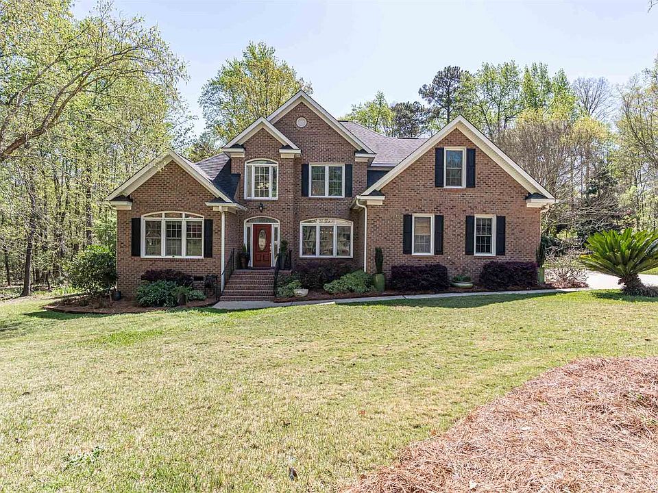 STUNNING CUSTOM HOME IN PRESTIGIOUS GOVERNORS GRANT NEIGHBORHOOD! This beautiful 5 Br/2.5 bath all brick home is on a huge .83 acre lot with amazing partially wooded backyard and is located on a cul de sac. Home has gorgeous hardwood floors throughout the main living area, high ceilings, heavy molding and gets tons of natural light! Home features an open floor plan and large rooms perfect for a growing family. Downstairs you will find an office/formal living room, formal dining room, laundry room, & a spacious eat in kitchen w/ granite countertops, tile backsplash, island and large pantry. Great room features soaring ceilings, gas fireplace, and overlooks a private deck and wooded backyard. The large master suite is on the main floor & features tray ceilings w/spacious walk in closet, double vanities & a separate glass shower. Upstairs, you will find 3 additional large bedrooms, another full bath, as well as a finished bonus room/ 5th bedroom. Covered porch off great room w/ custom built oversized deck overlooking the enormous professionally landscaped, private backyard. Two car side entry garage. New HVAC March 2021! Neighborhood amenities include community pool, playground, tennis courts, & clubhouse. Close to Lake Murray, shopping, dining, & zoned for Lexington School District 1 schools!