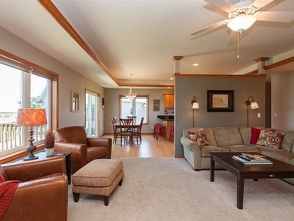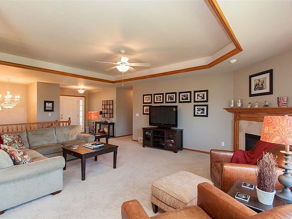 Clean, airy, comfortable, inviting. This home delivers it all, plus a great location and College Community schools. Spacious main floor with tray ceilings, large master suite, and great closet space. Bright kitchen featuring sleek black granite counters and bamboo wood floors which flows to the deck offering peaceful views to the west. Walkout lower level has tall 9ft high ceilings, a 2nd fireplace and huge family room..plus two bedrooms, two large storage rooms and storm shelter. 3 car garage too!