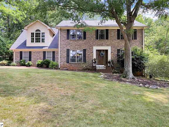 Updated, all brick home on a cul de sac in Sugar Creek! The quintessential Greenville home with one of the most popular locations in the county! This home features beautiful hardwoods throughout the main level and opens into a spacious study or family room with a custom built in desk or entertainment center and french doors. The dining room opens into the update kitchen with new updated custom ivory cabinets, granite countertops and stainless steel appliances including a double oven! The kitchen is also open to the breakfast room and living room. The living room features a stacked stone fireplace and opens out onto the screened porch. Also on the main level is a half bath, coat closet, mudroom and 2 car garage. Upstairs is the master suite with two closets (one a spacious walk-in), a sitting nook and private bath with double vanities! Three additional guest bedrooms and a full guest bath are also on the upper level. The sellers added a beautiful bonus room or fifth bedroom featuring vaulted ceilings, custom built-ins, a walk-in closet (also stubbed for an upstairs laundry if preferred) as well as full private bath with beautiful fixtures and appointments! Other features include a fenced in back yard with storage building, instantaneous water heater, hot water recirculating loop, hot and cold exterior faucets, hew high efficiency "massive flush" toilets, new hvac upstairs and re-landscaped front yard with new irrigation! A stunning all brick home perfect for a Summer move before school starts!