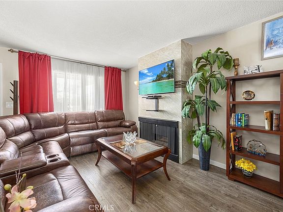 Don't miss out on this Beautiful SINGLE level 2 bedroom, 1-bath property located in the heart of Placentia! This charming home boasts an open-concept living area with a cozy fireplace and a 55" flat-screen TV included. The remodeled kitchen features quartz countertops, tile backsplash, newer cabinets, stainless steel appliances, and a convenient garden window. Both bedrooms are spacious with ample closet space and the spacious bathroom has been updated with a white cabinet with a stone countertop and an oversized bathtub with a shower. Enjoy updated wood laminate flooring, newer A/C and heater, Smart Thermostat, Smart Door Lock, Smart ADT Alarm System, finished ceilings, and upgraded light fixtures throughout. The private patio leads to a 2-CAR GARAGE with extra storage and a laundry area with a sink. Community amenities include a sparkling Pool & Spa, clubhouse, generous green spaces, and parking throughout, low HOA also covers exterior maintenance and roof. Walking distance to TOP schools in PYLUSD, shops, restaurants, Alta Vista Country Club, parks, trails & more! You won't want to miss this one! BEST BUY IN OC!