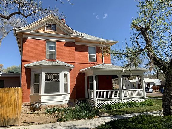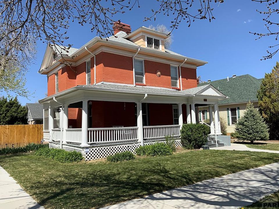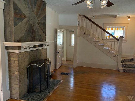 Don't miss this well-loved double brick family home! Room for all in this Historic two-story with a finished attic. Beautiful hardwood floors, spacious rooms, lots of light through big windows. The dining room features a lovely bay window and built in china closet. All appliances stay in the kitchen which also has a pantry. The back of the home has a den/office/bedroom with an exterior door and a walk in shower. So functional as many options are available. Upstairs there are four bedrooms and a finished attic with storage. So much living area! The basement is unfinished but has a newer furnace with humidifier and hot water heater. The workbench downstairs stays. A/c is a window unit. This property is dated and is being sold “as is”.
