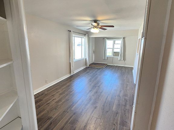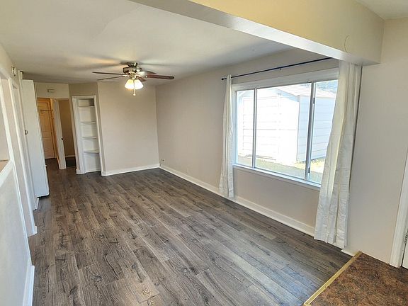 Don't let the small size fool you, this house has so much to offer and MOVE-IN READY. The house features a large living room with window a/c, updated kitchen with a eat-in area for a small table, oak cabinets, stove, dishwasher and refrigerator, plus 2 bedrooms, an updated full bath, and a laundry area with door leading to the back door. Interior and exterior are FRESHLY painted. Outside has a cement patio with a full chain-link fenced area, room for a garden and a large shed. METAL ROOF. Property is located across from the High School. There is a older solar panel on the back of the house. There is a fan in the attic with a cord that can be pulled down from the bathroom covered vent and plugged in for additional heat that blows through that vent and into the living room; condition unknown and hasn't been used for several year. Solar heat system is sold as-is with no guarantee, no warranty.