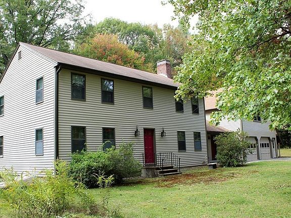 Need space? look no further, Large Colonial w/ In-law apartment above the 2 car garage w/ 2 separate entrances situated on 4 private acres. This home features open foyer separating living & dining rooms; eat-in kitchen with bay window and views of the wooded back yard; large family room with wide pine floors and a fireplace w/ outdoor access; 5 generously sized bedrooms & closets. Master suite has a walk-in and private bathroom. In-Law includes full kitchen & bath, bedroom, living room and large deck overlooking wooded/private back yard. Wide pine floors, over sized 2-car garage, huge basement with high ceilings, Buderus boiler 5 years old, 400 amp electrical, first-floor laundry, new carpeting in main home, Grande Foyer with Slate floor.