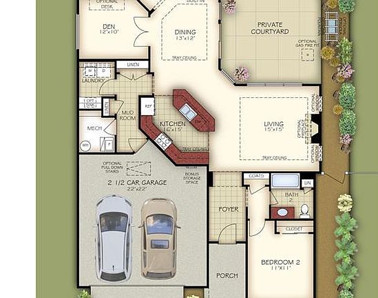 Wonderful new home in The Courtyards at Harmon Mill; this Portico has it all! Full stone on front elevation, and private side courtyard. Luxurious owner's suite has huge closet; spa-style, tiled, walk-in shower; trey ceiling; and direct access to a screened patio. The Kitchen, Dining, and Living Rooms surround a private courtyard flowing with natural light! Features include arched doorway openings, natural gas fireplace, transom windows, painted kitchen cabinets, quartz kitchen countertops, brushed nickel fixtures, and SS appliances. Engineered wood flooring in Kitchen, LR, DR, Den & hallways. Upgraded cabinetry with soft-close drawers/doors & crown molding. Ceramic tile in Laundry room & bathrooms. All lots have irrigation, and the HOA handles lawn care. The community has sidewalks & a walking trail. Fantastic Kernersville location, just south of Bus. 40; close to shopping, dining, med. centers. Lots of storage & 2-car garage! Photos similar to this home.