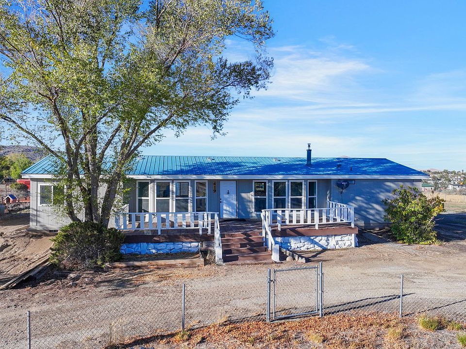 This 3-bedroom, 2-bathroom home sits on a 1 acre lot, giving you the space and freedom to live the lifestyle you've always wanted. The home features an inviting open floor plan with plenty of natural light. Each room is well-sized, offering both comfort and functionality. The primary bedroom comes with an en-suite bathroom located on one end of the home while two additional rooms are on the other end of home. The kitchen comes with plenty of counter space and storage. The bright, open living area features a pellet stove for warmth and efficiency. This acre lot provides the perfect canvas for any outdoor activity. You'll have room for RV parking, and a workshop! Located close enough to enjoy the conveniences of town, yet far enough to experience the peace and quiet of rural living. This home offers endless possibilities for those looking for space, comfort, and privacy. Don't miss this fantastic opportunity! Owner is Nevada Licensed Real Estate Agent