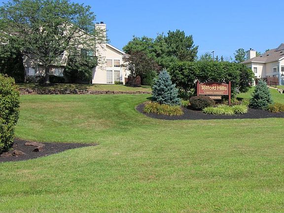 Welcome to 419 Wexford Way - a rarely offered end unit 3 story floor plan located in the desirable Telford Hills, Souderton school district area. Only a few of these models exist in this neighborhood & this home is move-in ready and has been tastefully updated throughout! You will enjoy coming home to this dramatic 2 story living room which offers a stunning floor to ceiling wood-burning stonewall fireplace and a custom wood-stained cathedral ceiling with decorative large beams. This room is one of a kind! This home has two large bedrooms each located on separate floors. The master bedroom includes his and hers closets, an updated ceiling light/fan, and lots of extra space for additional furnishings. Two full baths conveniently located outside each bedroom on separate floors and offers the ultimate in separate living spaces. A beautiful newly remodeled kitchen with stainless steel appliances and granite countertops. A newly installed HVAC unit with utility closets that include a washer/dryer. A lovely rear entrance with an elevated deck overlooking a tranquil rear yard with mature landscaping. Solid wood steps & beautiful newer laminate high end flooring throughout. Rounding out this beautiful space, it also includes an enormous amount of closet space with space on every floor, strategically placed skylights for added natural light, and an attic storage area. The condo association fees are kept at a minimum and include lawn maintenance/landscaping, snow removal, trash removal, and an ample well-lit parking area in a well-designed spacious condo complex. This is a must-see unit that has a ton of charm and character!!!