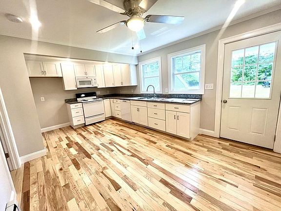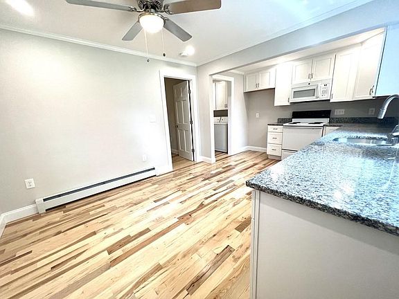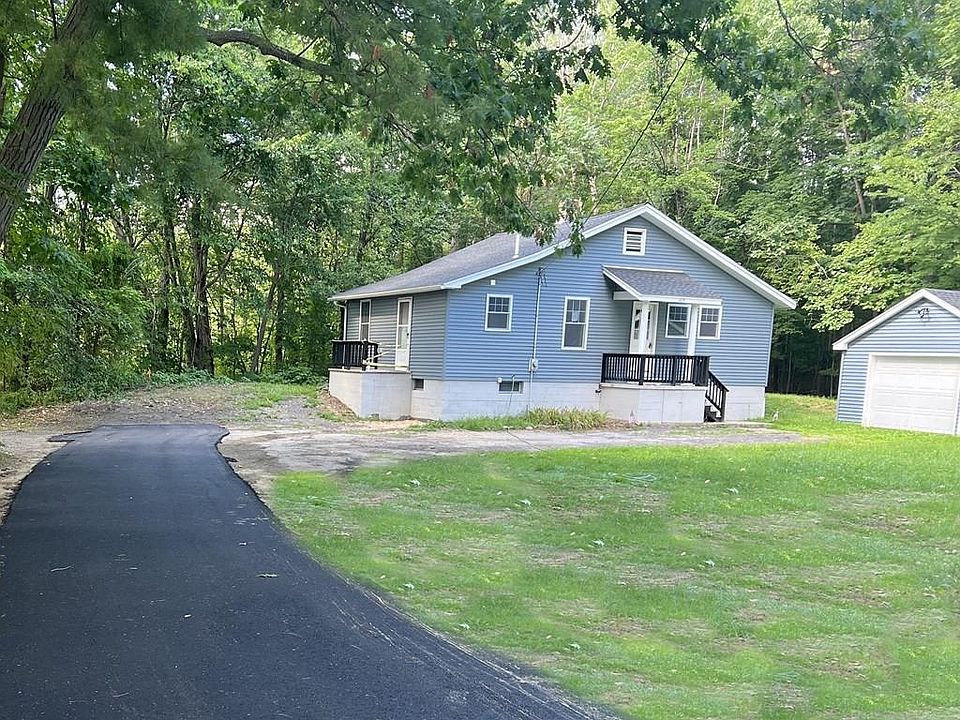 Charming 3 bedroom, 1 bath home with open floor-plan. All on one level! This home has been professionally renovated and remodeled inside & outside. The home & the spacious detached garage, both have new dark grey siding and a newroof. . The home has updated electrical & plumbing and a recent hot water tank & furnace. The home is zoned commercial so it could be ideal for a family to live there and run business. The home is nestled in a very quiet setting off the main road. The home has SPECTACULAR hardwood floors throughout! The country kitchen has lovely white cabinets and grey, granite countertops. It is open to the living room and has a main floor laundry. The home is bright and airy with new picture windows throughout. The home also have-like full bathrooms a spacentral location!!!! Close to public transportation, shops, great restaurants and CVS. 400 feet away from a the golf driving range and 900' feet to the Lunenburg, Town Beach on Whalom Lake.