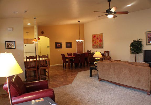 Don't wait to capture this beautiful unit at Moab's most desirable vacation property! The Cottonwoods are situated in the downtown core, within walking distance to all of Moab's amenities.This three bedroom, two bath townhome is beautifully furnished and turn-key for your enjoyment. The landscaping surrounding this unit is particularly beautiful, and there is a private hot tub under a shady pergola in the back yard.With an attached, 2 car garage and additional off-street parking, this is a perfect home base for your Moab vacation!