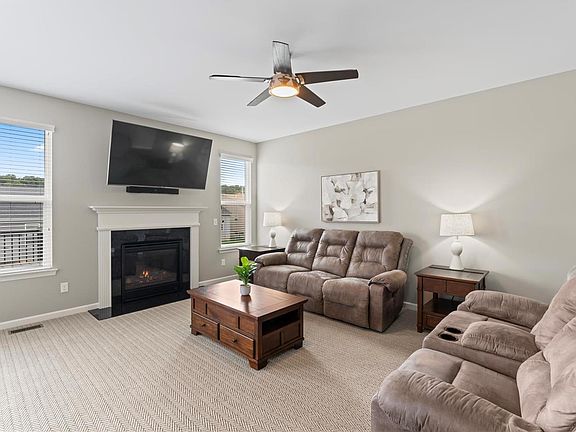 Experience unparalleled luxury in this stunning custom-built home that exudes elegance at every turn. The open floor plan showcases high-end luxury vinyl plank flooring throughout the main living areas, while the great room dazzles with gorgeous herringbone-patterned carpeting, soaring 9-foot ceilings, & a cozy gas fireplace—perfect for relaxing evenings and grand entertaining.