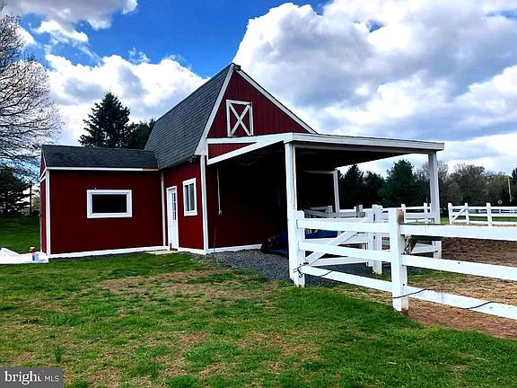 A special, gentleman’s farm in Washington Crossing on approx. 3.5 acres with all the amenities. Pull up the circular drive to this stately brick front, 5 bedroom colonial home. Enter the foyer with solid wood floors, flanked by the spacious living and dining rooms. The expanded great room overlooks the rear property through a wall of windows pouring light into the room centered on a warming PA fieldstone fireplace. Flow into the gourmet, island kitchen with granite countertops, double wall ovens and an abundance of custom cherry cabinetry. The kitchen is complete with a large sun-drenched dining space, all with beautiful solid wood floors. The half bath, laundry/mud room, back entrance and garage are neatly tucked away off the kitchen. Upstairs there is a primary suite. The 3 secondary bedrooms share an updated full hall bath. The primary suite includes a sitting area, his and her’s closets and full ensuite bath with jetted tub. A welcoming outdoor entertaining space with maintenance free deck off the great room’s patio door overlooks the heated in-ground pool, hot tub and picturesque pasture. Outdoor access to the basement kitchenette and full bath makes this ideal for entertaining with ease. This home is nestled among beautiful estate properties that make this area of Bucks County such a valued gem. The finished bright, daylight, walk-out basement with approx. 1500 sqft additional living space above the public record, including a full bath convenient to the pool and 5th bedroom, workshop and 2nd laundry area, kitchenette and more storage. Great walk-out space for a home office, family room, and in-law suite. Don’t miss touring the picturesque barn. Approved for livestock with 1 stall, loft, tack area with electric and water, fenced pasture. Home for horses, cattle, chickens, or store your boat and recreational vehicles. 2nd additional tax parcel not reflected in public record. Total acreage is correct. New septic 2019. Lovingly well maintained. Low taxes. Highly ranked Council Rock North schools. So convenient, just a few short miles from I95 and the shopping and dining of Newtown. Take advantage of this rare opportunity among the beautiful farms and estates of Upper Makefield Twp. You may never want to leave.
