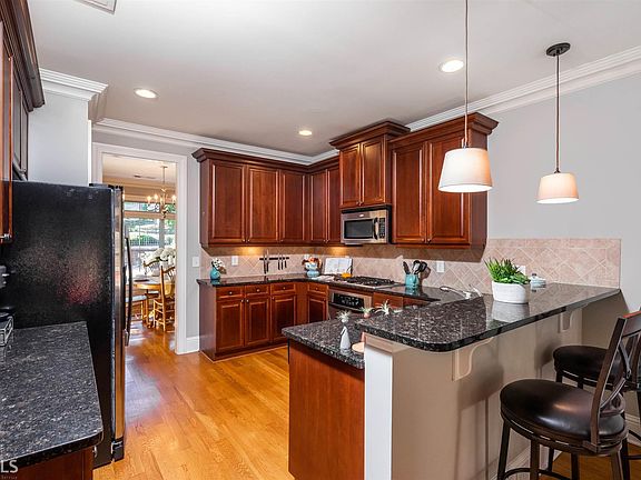 Impeccable 3 BR/2 BA/1 HB end-unit townhome situated in Three Bridges. Private brick courtyard for grilling & entertaining. Beautiful finishes include hardwoods on main, crown moulding, built-in bookshelves, and granite countertops. Powder room on main. Wall of windows in Dining and Family Rooms. Kitchen features SS appliances, refrigerator, and large breakfast bar. Master Bath with tile shower, garden tub. Swimming and tennis amenities. Excellent schools. Prime location to Sims Park and Town Center Suwanee.