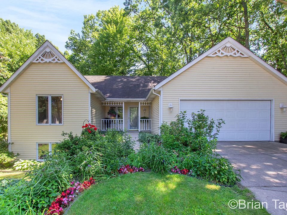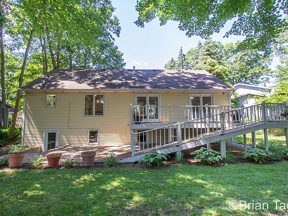 On a nice quiet street at the end of a cul-de-sac with no drive through traffic. Huge park like yard, beautifully landscaped brick walking paths and underground sprinkling. The location is hard to beat. Close to shopping, restaurants, parks, walking trails, Oriole Park Elementary, easy HWY access to 131 & M-6. Main floor has open concept that is perfect for entertaining. New kitchen with soft close doors & drawers, quartz countertops, tiled backsplash, snack bar and stainless steel appliances that stay, FR, DR with cathedral ceiling and LED lighting. FR has french doors to the deck. Master bedroom his and hers closets french doors to the deck full bath 2nd bedroom. Downstairs walkout basement is completely finished with living room, full bath, 3rd & 4th daylight bedrooms, laundry