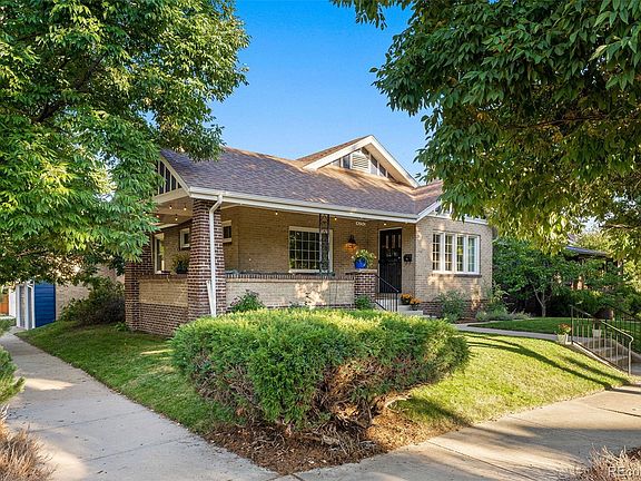 This brick bungalow beauty is the quintessential 1915s Craftsman. It sits on a west-facing, quiet corner lot in the heart of Sunnyside. Step inside from the wraparound front porch to find an effortlessly-open floor plan with original hardwood floors, historical details, modernized fixtures, and floor-to-ceiling windows that fill the space with natural light. Character + charm galore! The updated kitchen offers eat-in bar seating with quartz countertops, high-end stainless steel appliances, brand new tile flooring, and a royal blue custom backsplash. Three spacious bedrooms are on the main level, along with a timelessly-remodeled full bathroom overlooking the private backyard. Downstairs, there is so much BONUS flex space on the finished lower level - including the spacious laundry room (complete with built-in storage), another 3/4 bathroom, and a storage room with more custom shelving. This level could also serve as an additional guest suite, office or home gym. On the exterior, you’ll find a large fenced-in, professionally-landscaped backyard with a beautiful garden, fire pit, and plenty of room for all of the outdoor activities. Don’t forget about the detached, side-entry 2-car garage, too. This historic Highlands home is located on a stunning tree-lined street, close to the neighborhood schools and within walking distance of Rocky Mountain Lake Park, all of the eateries and shops along Tennyson St, and W 38th Ave to get into LoHi in no time. Just blocks from Bacon Social House, The Wolf's Tailor, and Sunnyside Supper Club! You can also be at Coors Field, Ball Arena, Empower Field, or Downtown Denver within 10 minutes! No better location exists in Denver Proper. Schedule your showing today!
